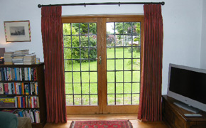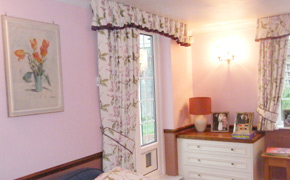I wanted 'something' above my bay window and door, so I called Thimbledown who arrived with loads of fabric samples and a head full of ideas. Together we chose a suitable fabric and style of pelmet and transformed a rather stark area into something warm and homely.